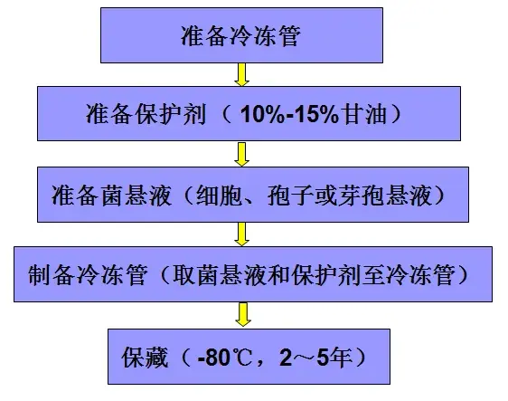指将保藏的菌种细胞或孢子悬浮于保护剂中,经预冻后在真空条件下使水分升华浮于保护剂中,在-80℃冰箱中冻结保存的一种长期菌种保藏方法。